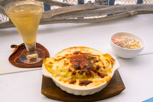 とろ~り、熱々「オムライスグラタン」(900円)。チーズとケチャップライスとの相性も抜群。