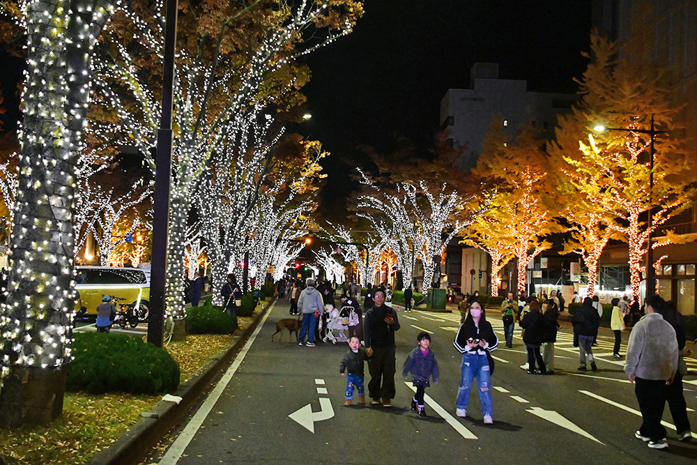 和歌山市駅まで光の道延長 けやき大通り130万球点灯