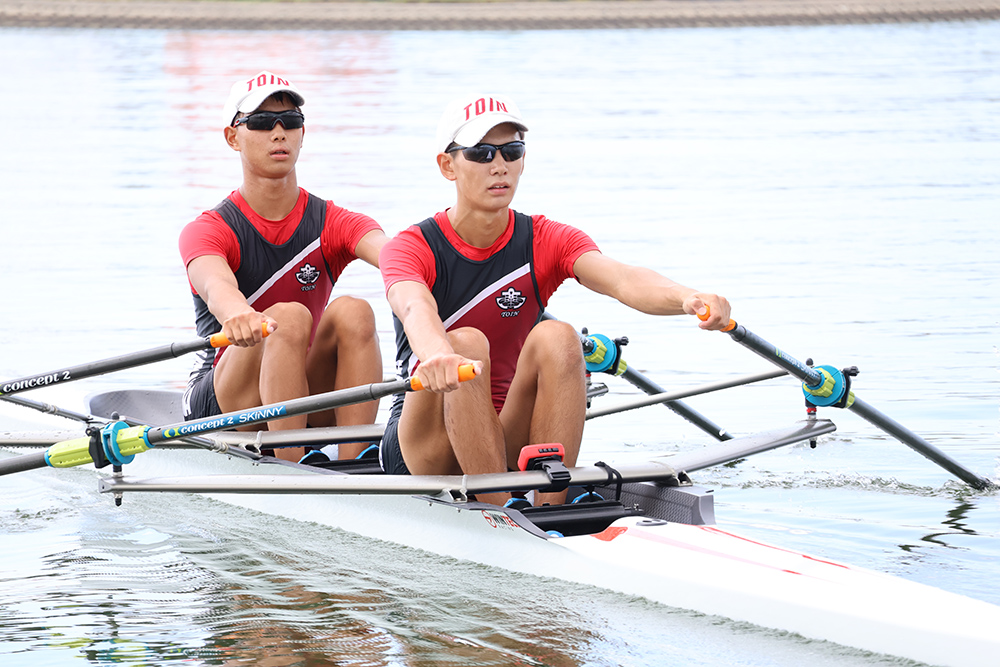 一方、男子ペアのインターハイの表彰台は、桐蔭ボート部創部初の快挙。山﨑さんは「向上心と探究心を常に持ち続け、限られた時間の中で動画分析などを取り入れた質の高い練習に努めてきた」と話す。髙山さんは先輩の山﨑さんに直に意見を伝え、時にぶつかりながら課題に取り組んできた。共に無駄のない動きで、最後250㍍のラストスパートまで力を出し切る強みを持つ。