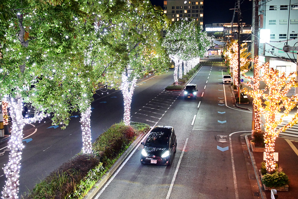 和歌山市駅まで光の道延長 けやき大通り130万球点灯
