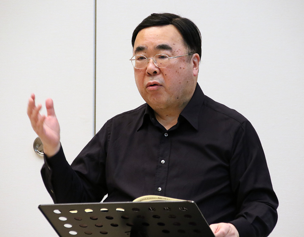 練習会では、合唱の要所を一通り聴いた澤さんが、「全体的に素晴らしい」と団員らに語りかけ、歌詞の発音や音程のとり方、管弦楽との調和を見据えた表現など、細部を指導。団員たちも熱のこもった歌声で応え、練習終盤に澤さんは「素晴らしい演奏会になるのは間違いない」と話し、多くの人に会場に足を運んでもらえるよう、団員たちに呼びかけた。