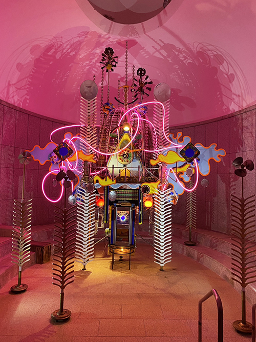 同ミュージアムは、世界中の職人技が結集した「建築の宝石箱」と称される空間。石田さんは「異界」をテーマに、公園で撤去された滑り台などの遊具や、「モノ」に詰まった人の思いも作品に組み込み、再生させている。